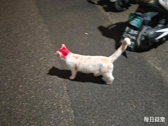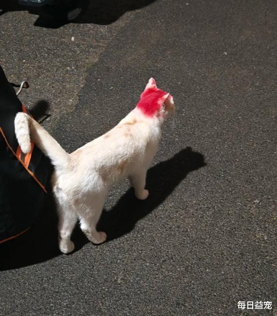 至于头顶为甚被染色了,其中还有一个大乌龙:猫咪跑到小区门口剃头店打翻了染色剂,前爪亦然这样染上的。